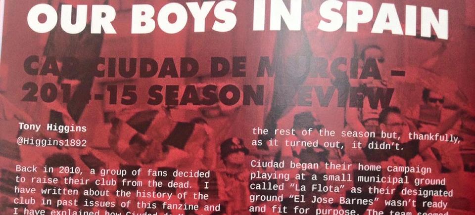 d32-q65jI am delighted to announce that I have an article, about CAP Ciudad de Murcia, appearing in the unofficial City of Liverpool FC fanzine.  The fanzine is called Haze and can be downloaded here for free HERE. However, the lads do ask that you make a donation to the mental health charity MIND. So please do so after reading. The article is on page 26 &27.